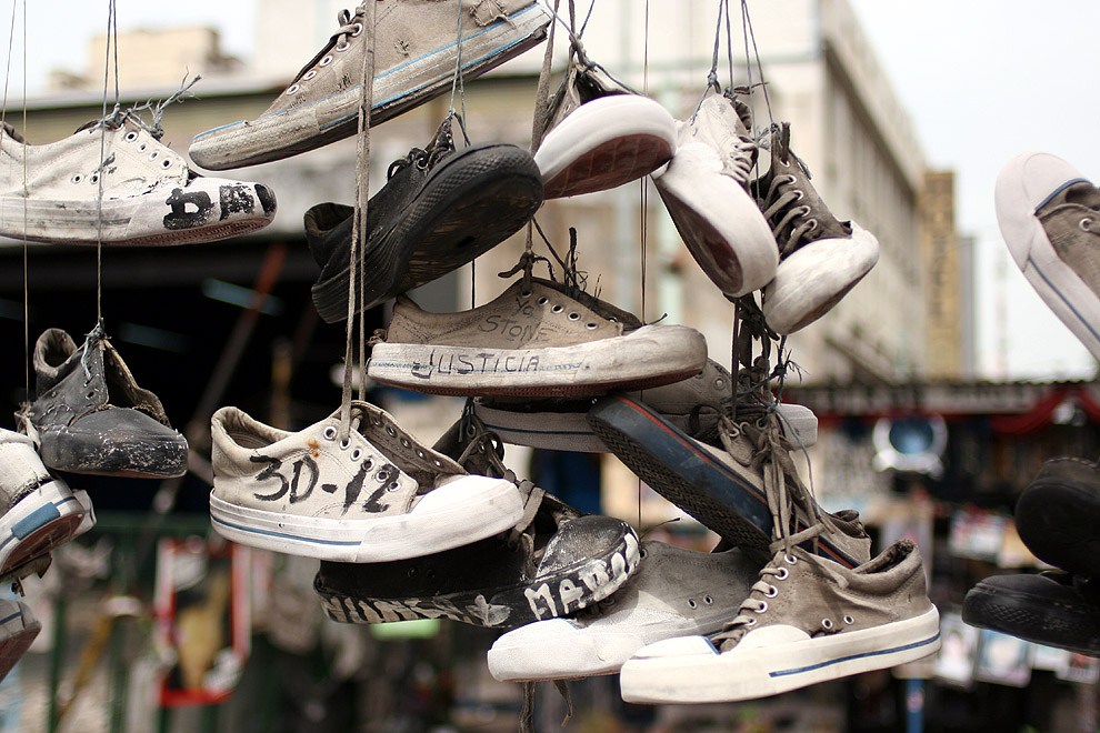 Necesito relajarme. Me siento en la nueva plaza Miserere y prendo un pucho. Voy tragando las cenizas de Cromagnon de a poquito, como agujas chiquitas rascando la garganta. Odio ver los pares de zapatillas colgando de los cables. Esos lugares ya están marcados, ya duelen desde el vamos, les pusimos la cinta del luto y los condenamos. ¿Será justo maldecirlos por nuestros tormentos?